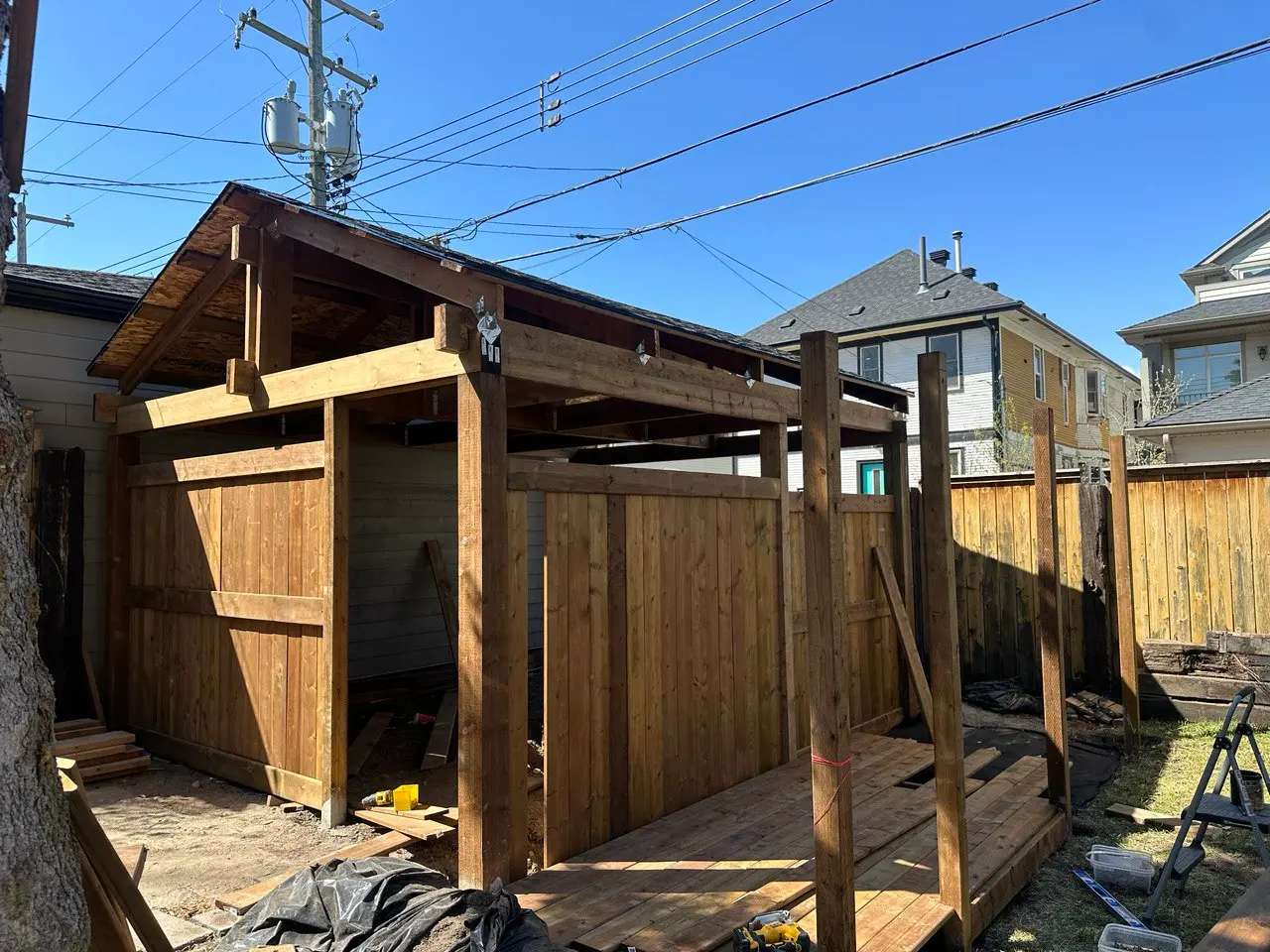 This Combo project. Carpot, Shed, Wood dryer design and build project by Buhai Construction involved creating a custom deck for a residential